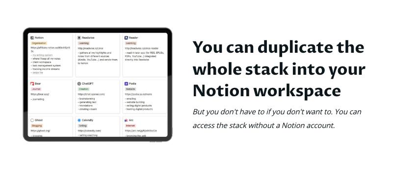 But you don't have to if you don't want to. You can access the stack without a Notion account.