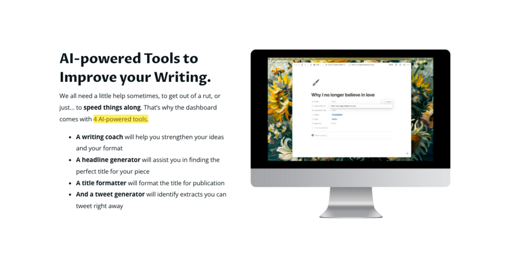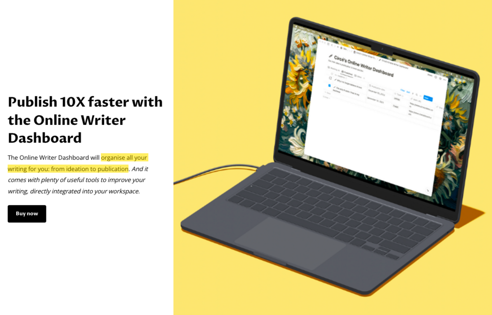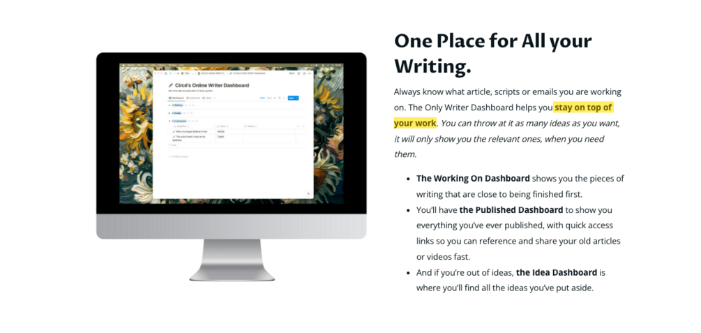 ONLINE WRITER DASHBOARD - A Notion Template to help you write and publish faster